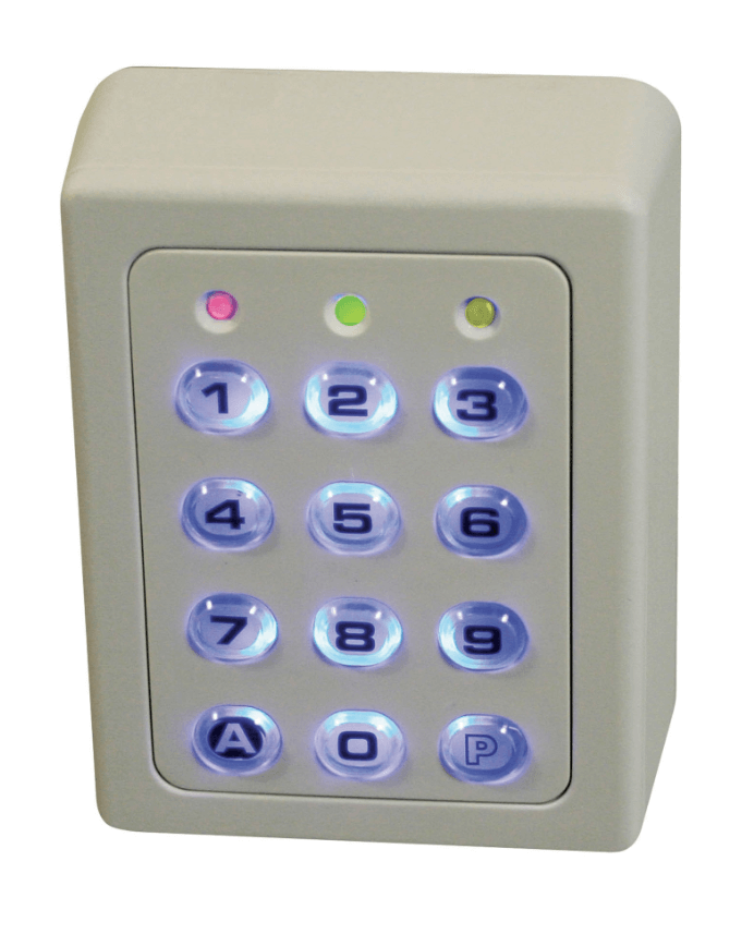 Clavier 2 relais, 60 codes, touches plastiques, boîtier abs beige, 12/24 AC/CC.