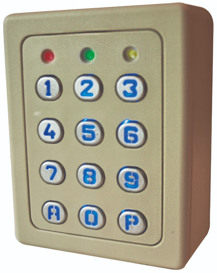 Clavier 2 relais, 60 codes, touches métalliques, boîtier abs beige, 12/24 AC/CC.