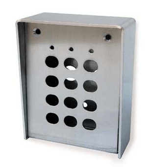 Boîtier inoxydable positionnable en applique pour clavier gamme SU, SU1, SU2, SU4, SU485 et SU-ELA+ avec les vis de sécurité, 115 x 90 x 50mm.