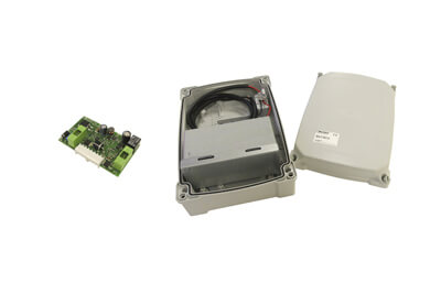 Kit carte de raccordement et chargeur de batterie pour contrôleurs numériques Brushless B70/1DCHP, B70/1THP et EDGE1/BOX à 36V DC. Complet avec coffret en plastique, sans les batteries.