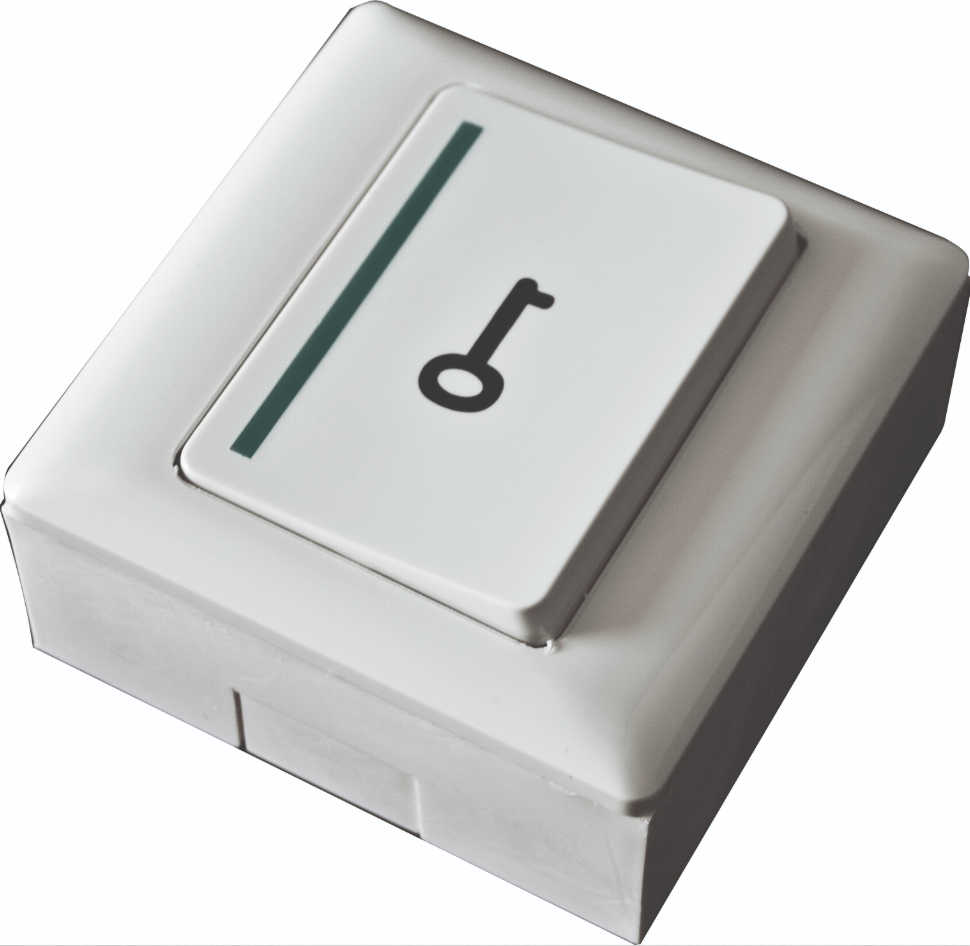 Bouton poussoir à bascule en boîtier abs avec un symbole clé, positionnable en applique.