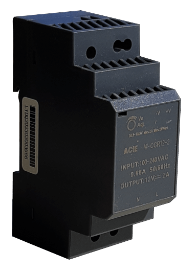 Alimentation rail-din 12V 2A fixation sur rail-din 2 modules.