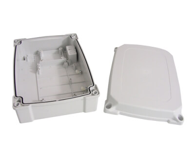 Coffret ABS en plastique pour B70/2DC/BOX et EDGE1/BOX avec fond, couvercle et 4 vis.